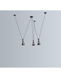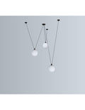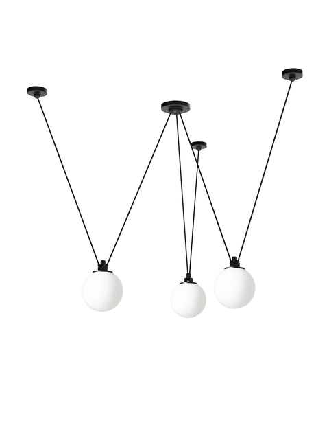 Pendant lamps in cast aluminium and textile cables. Les Acrobates de Gras perform various figures in the air, perched at a height of several metres. The spectacle is bold: in movement, rhythm and colour. The colours and shapes of the Gras reflectors and glass balls (sizes L, XL, Ø175 and Ø250) offer a dynamic and elegant display. Les Acrobates de Gras can be linked together. Each one can perform its number!