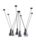 Pendant lamps in cast aluminium and textile cables. Les Acrobates de Gras perform various figures in the air, perched at a height of several metres. The spectacle is bold: in movement, rhythm and colour. The colours and shapes of the Gras reflectors and glass balls (sizes L, XL, Ø175 and Ø250) offer a dynamic and elegant display. Les Acrobates de Gras can be linked together. Each one can perform its number!