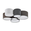 This wall or ceiling luminaire of the PASTORE series is made of white steel and anthracite-brown, white and grey textile. With three E27 illuminants it shines in a pleasant tone. The wall or ceiling luminaires of the PASTORE series inspire with their combination of steel and textile and create a pleasant atmosphere in your home.
