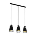 This pendant luminaire of the AUSTELL series is made of black steel and black and golden textile. It has protective insulation and needs an E27-illuminant to shine.Noble vintage look for your home: The golden textile and the black metal wires complement each other perfectly, making the luminaire a wonderful home accessory.