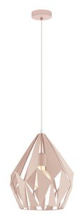 This pendant luminaire from the successful EGLO Trend & Vintage collection is one of our design highlights. Its pastel-apricot diamond shape and the specially arranged surfaces conjure up beautiful plays of light and shadow in your room. By choosing the right E27-illuminant, the light effect of this luminaire can be further enhanced. We recommend modern LED filament illuminants from our EGLO illuminant collection.The luminaires of the CARLTON-P series enchant with their pastel-coloured diamond shape and bring the popular vintage style into your home.