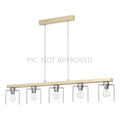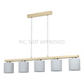 This pendant luminaire of the CASTRALVO series is made of steel with a in satin nickel surface, bright, naturally coloured wood and white textile shades. It requires five E27-illuminants to shine, thus ensuring ideal illumination of your living areas.The CASTRALVO luminaire series inspires by the use of wood and the option of white textile or amber vaporized glass. The five light sources ensure optimum illumination.