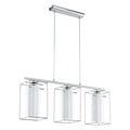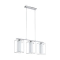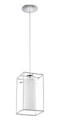 This pendant luminaire from the series LONCINO 1 is made of chrome-plated steel and clear and white satinized glass. It has protective insulation and needs an E27-lamp to shine.The special combination of round and square glass characterises the luminaires from the series LONCINO 1.