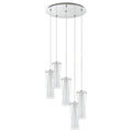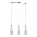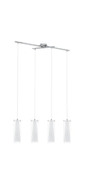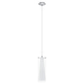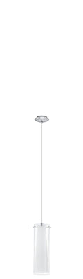 This pendant luminaire from the series PINTO is made of chrome-plated steel, clear and white, opal-matte glass. The spotlight needs an E27-lamp.The luminaires from the series PINTO inspire with their narrow design and provide a comfortable atmosphere.