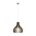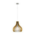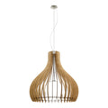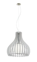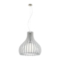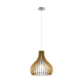 This pendant luminaire from the series TINDORI is made of satin nickel steel, white wood and white glass. The spotlight needs an E27-lamp.The luminaires from the series TINDORI enchant with their trendy wood lamella design and turn your home into your personal wellness oasis.