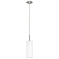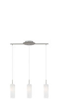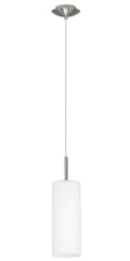 This pendant luminaire from the series TROY3 is made of satin nickel steel and white-painted satinized glass. The spotlight needs an E27-lamp.The luminaires from the series TROY 3 score with their simple, timeless style and look good in any living room.