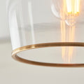 Features & Benefits: Brushed aged brass plated metal work. Clear glass shade with metal trim edge. Dimmable. Twin with E27 LED filament lamp for that unique 'on trend' look