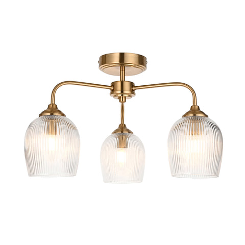 This 3-light semi-flush ceiling fitting exudes classic charm with a modern edge, featuring fluted clear glass shades that beautifully diffuse light. The gently curved arms and warm brass-toned frame add a refined silhouette, ideal for enhancing lower ceilings without compromising on style. Perfect for kitchens, hallways, or living spaces, it offers a timeless blend of elegance and functionality.