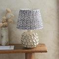 Inspired by nature, this hand decorated sculptured ceramic table light is finished in a gloss vintage white crackle glaze; with a switched brass B22 lamp holder and natural colour braided flex. Paired with our subtle pearl grey 35cm Leaf shade for the perfect interior addition.