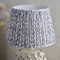 Features & Benefits: Hand crafted ceramic table light base. Ivory crackle glaze finish. Aged brass plated stem. Switched B22 metal lamp holder. Handmade gathered pleated tapered shade. Digitally printed pearl grey faux linen fabric. Taped edge detailing with plain inner lining. 1.5 metre natural colour braided flex. Compatible with B22 LED lamps