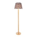 This natural floor lamp features stacking spheres of bamboo wood, with a 40cm tapered shade in a subtle pearl grey zig zag pattern design. A versatile design style that would look at home in both classic and modern interiors.