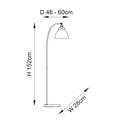 Dimensions: 1520mm height x 280mm width x 460-600mm depth