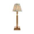 Not tied down by the need for a power cable, this portable, rechargeable 3 stage touch dimmer table lamp enables you to select your own level of light. Classic in style with a reeded stem and square base, finished in aged brass making it easy to place around your home. Turns on for low light then touch controlled to increase light level to medium then bright. Taking just 5.5 hours to fully charge and giving up to 36 hours of continuous light. Place on shelving, hallways, bedsides or dining tables, a truly versatile addition to your home. Paired with our subtle herb green 16cm Leaf decorative clip-on shade for the perfect timeless style.