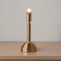 Not tied down by the need for a power cable, this portable, rechargeable 3 stage touch dimmer table lamp enables you to select your own level of light. Classic in style with stepped base and finished in aged brass making it easy to place around your home. Turns on for low light then touch controlled to increase light level to medium then bright, making it the perfect bedside light. Taking just 5.5 hours to fully charge and giving up to 36 hours of continuous light. Paired with our subtle pearl grey 16cm Leaf shade for the perfect timeless style.