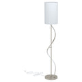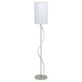 This floor luminaire of the ESPARTAL series, consisting of satin nickel steel and aluminium as well as white textile, shines with an E27 and integrated LED illuminant. The two lighting elements are separately switchable via a pull switch.The luminaires of the ESPARTAL series impress with their simple design, making them suitable for a wide range of applications in your rooms.