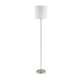 This floor luminaire from the series PASTERI is made of satin nickel steel and fabric in white. It is operated by pedal switch, has protective insulation and needs an E27-lamp to shine. Steel and fabric shades in many different colours are processed into luminaires in many different shapes and types for the series PASTERI.