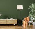 JAZZ 1LT FLOOR LAMP, SATIN SILVER AND BLACK, WHITE VELVET SHADE. PULL SWITCH