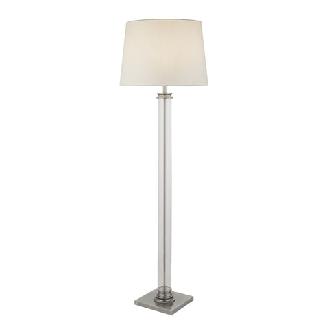 PEDESTAL FLOOR LAMP - GLASS COLUMN & SATIN SILVER BASE, CREAM SHADE