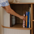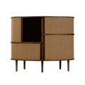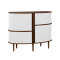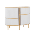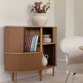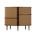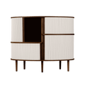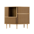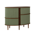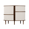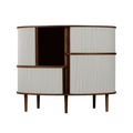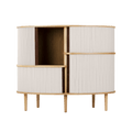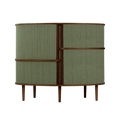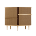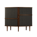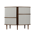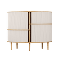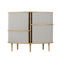 The Audacious highboard is a cabinet ideal for the living room, or anywhere you need storage. The expression is Nordic yet bold, with its sliding fabric tambour doors creating a nostalgic yet modern reference to the interior.