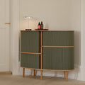The interior of the highboard has two shelves, spacious enough for you to store your tall vases, and fine liquor while also being suitable for plates, ceramics, board games or other living room clutter.
