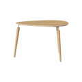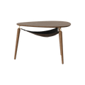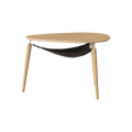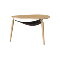 With its clean and minimal organic shape, as well as the combination of wood and fine metal details, the Hang Out coffee table has a classic Scandinavian expression. Thin graceful legs attached to a slender metal bracket and sculptured rounded table top give Hang Out a light and airy profile.