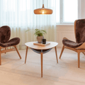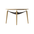 Underneath the table top, a special bag is suspended across Hang Out’s three legs like a hammock. The stylish two-sided leather and textile bag is perfect for storing small items. With both a leather and textile side, Hang Out’s bag can be easily swapped around to add a different expression to your interior.