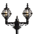 Victorian style globe lamp post double headed in cast iron 3.4m in height The design for the Heritage range of lighting has been taken directly from a Victorian original lamp post with a cast iron globe. This classic and unique design will add instant style and vibrancy to any outdoor area, the vintage globe and cast iron embellishments are also very versatile with many classical style properties.