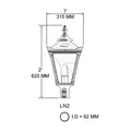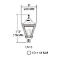 This product is for the lantern only, this lantern is suitable for pipes of 33-42mm in diameter. This lantern can be found on our H4 lamp post.