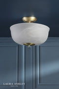 Laura Ashley Cossington 2 Light Semi-Flush Matt Antique Brass and White Marble Effect Glass