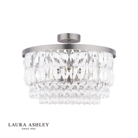 Laura Ashley Rhosill 3 Light Semi-Flush Crystal and Aged Pewter