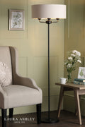 Laura Ashley Sorrento 3 Light Floor Lamp Matt Black and Natural With Shade