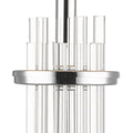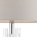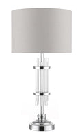 The Chrysler Table Lamp has a distinctive art deco feel with its eye catching base; featuring clear crystal rods at varying heights grouped together with two polished chrome bands which then sit atop a structured base. The Chrysler is sold complete with luxurious Ivory drum shade and is also available in an Antique Brass finish.