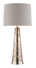 The mercury dappled style glass of the Ember gives this table lamp a striking weathered look. The burnt glass copper effect catches the light beautifully making this lamp both functional and a beautiful piece to compliment both contemporary and traditional interiors. The Ember comes complete with a luxurious stone drum shade.