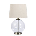 Lighten up living spaces with the Lewis table lamp, designed with an elegant glass ball body, together with a sleek antique brass stem and base. Provided with cream linen shade will blend effortlessly into most interiors.