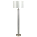 This floor lamp features a satin chrome finish with a clear glass stand. Complete with a simplistic silk shade. Classic in its style, this floor lamp is a timeless way to update your space.