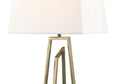 The Plaza is a contemporary table lamp which comprises of two interlocking antique brass rectangular frames making it both a beautiful lamp and an eye catching piece for your home. Paired with a crisp white box shade completes the elegant feel of this table lamp. The Plaza is also available with a matching floor lamp and in a Polished Chrome finish.