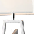 The Plaza is a contemporary table lamp which comprises of two interlocking polished chrome rectangular frames making it both a beautiful lamp and an eye catching piece for your home. Paired with a crisp white box shade completes the elegant feel of this table lamp. The Plaza is also available with a matching floor lamp and in an Antique Brass finish.