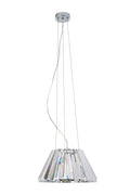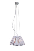 The Senza Single Light Pendant with a decorative crystal glass shade and polished chrome ceiling plate. The Senza is part of a full range which includes two different sizes ceiling lights, table lamp and a wall lamp and also comes in an Antique Brass finish.