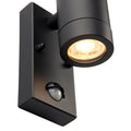 This outdoor twin wall light from the Odyssey range with a matt black finish, offers a stunning designer look at an affordable price. The built-in PIR has a 110º detection angle, 8m maximum range with a 5 sec - 5 min timer function. Matching items and other colour options available.