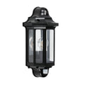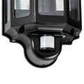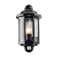 A traditional exterior wall lantern in a satin black finish with PIR sensor technology, meaning it can be activated by movement. Designed to be practical and aesthetically pleasing, it also aids security and is perfect for lighting doorways and paths. IP44 rated making it suitable for outdoor use.