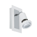 This spot from the series SARRIA is made of white and chrome-plated steel and operated by rocker switch. It is equipped with a GU10-LED-lamp for a warm white light.The spot series SARRIA shines in a refined design and ensures a pleasant light throughout the apartment.