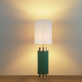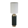 FLASK 1LT TABLE LAMP, DARK GREEN LINEN WITH ANTIQUE BRASS AND WHITE SHADE
