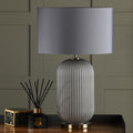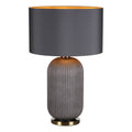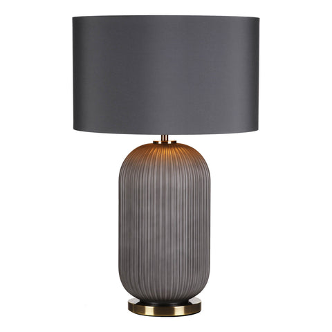 Helicon Table Lamp Grey Ribbed Glass and Antique Brass With Shade