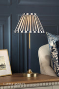 Laura Ashley Denwick Table Lamp Matt Antique Brass and Satin Blue With Shade