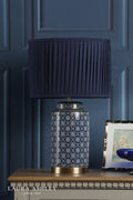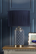 Laura Ashley Knipton Table Lamp Blue Ceramic and Antique Brass With Shade