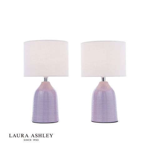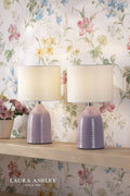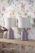 Laura Ashley Penny Table Lamp Purple Ceramic and Polished Chrome With Shade (Twin Pack)