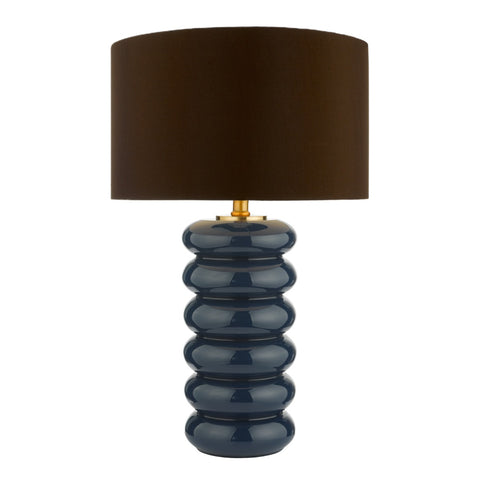 Niamh Table Lamp Blue Glass and Aged Bronze With Shade