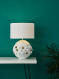 Sphere Table Lamp Gloss White & Gold With Shade