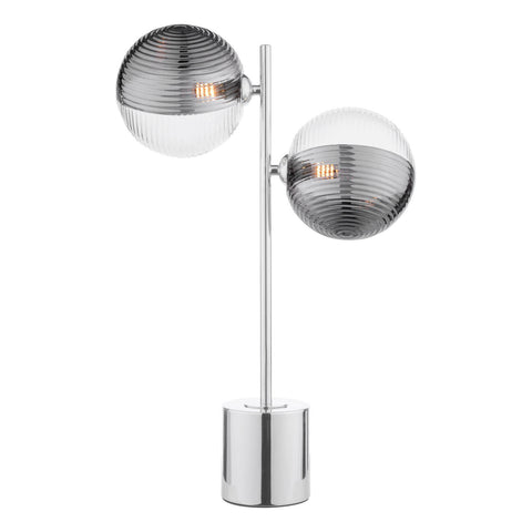 Spiral 2 Light Table Lamp Polished Chrome & Smoked/Clear Ribbed Glass