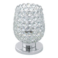 This table luminaire from the series BONARES 1 is made of chrome-plated steel and clear crystals. It is operated by a cable switch and has protective insulation. The spotlight needs an E27-lamp.The luminaires from the series BONARES 1 with their clear crystals provide an extraordinary play of light.